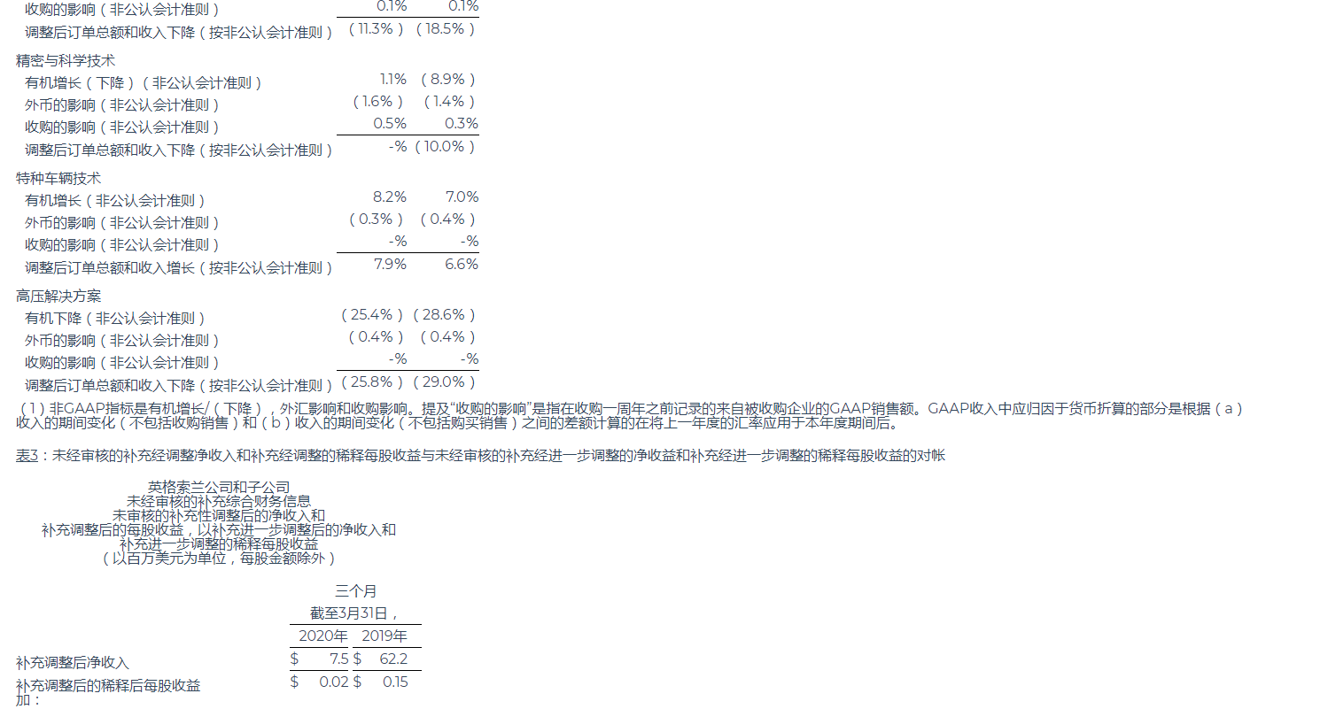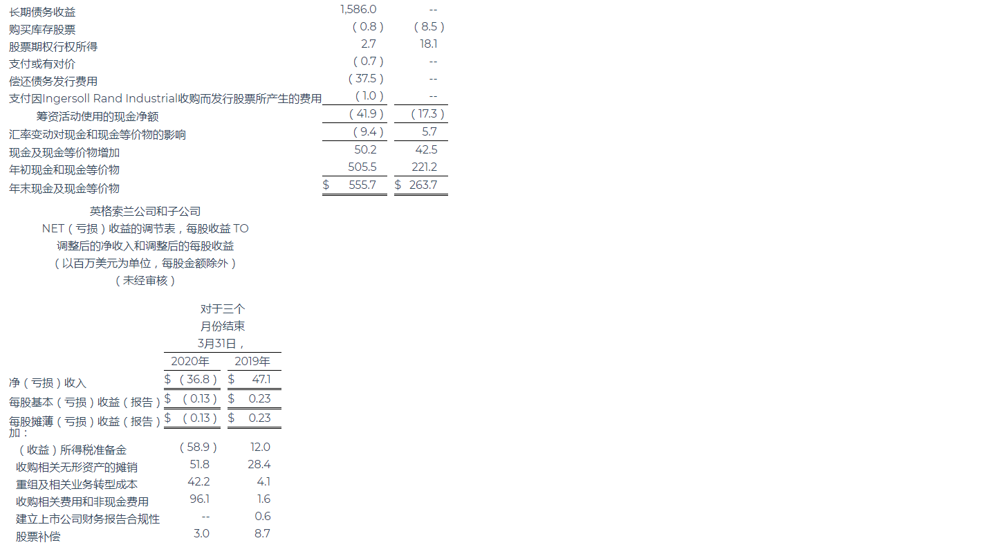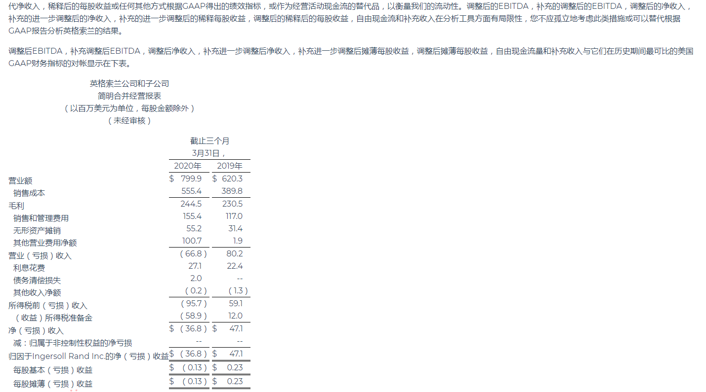 英格索蘭公布2020年第一季度業(yè)績